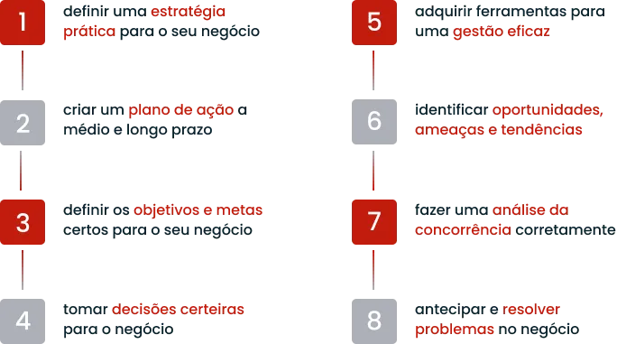 Estes pontos são alguns dos indicadores que evidenciam a falta de estrutura e de estratégia de um negócio. Felizmente, a estratégia certa não depende de tentativa e erro. Ela é conseguida com um mapa que leva o seu negócio aos objetivos pretendidos.